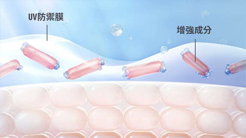 當UV防禦膜遇汗或水時啟動更強UV防護,更均勻緊貼肌膚,並減低因摩擦令防曬脫落。
